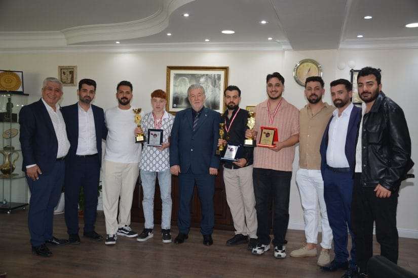 Dereceye giren berberler oda yöneticileri ile İzmir Esnaf ve Sanatkarlar Odaları Birliği (İESOB) Başkanı Yalçın Ata’ya ziyarette bulundu. Oda yöneticilerini ve yarışmacıları samimi bir ortamda konuk eden Başkan Ata, dereceye giren berberlere altın takarak ödüllendirdi.