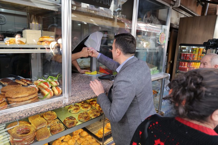 Bornova, Menemen, Bayraklı gibi ilçelerde de esnafın iş yerlerine girerek selam veren Hamza Dağ, bir taraftan dert dinledi, diğer taraftan gönüllere girmek için çabaladıklarını kaydetti.