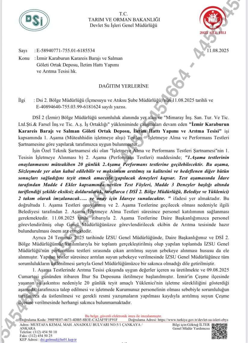 24 Temmuz 2025: DSİ–İZSU toplantısında, arıtılmış suyun şebekeye verilmesi için tek şartın İZSU’nun sorumluluk alması olduğu kararlaştırıldı.