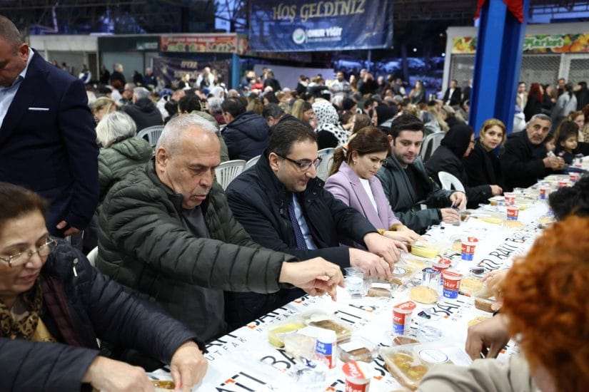Balçova’da Çetin Emeç, Onur ve Fevzi Çakmak mahallelerinin sakinleri, Teleferik Pazar Yeri’nde düzenlenen iftar yemeğinde bir araya geldi. 3 mahallenin sakinleri birlikte oruç açarken, Balçova Belediyesi tarafından ilçedeki tüm mahallelerde iftar sofralarının kurulacağı belirtildi. İftar yemeğine eşi Ayşegül Yiğit ile birlikte katılan Belediye Başkanı Onur Yiğit, “Balçova’dan, bu güzel ülkemizden ve dünyadan dostluk ve barış eksik olmasın. Umarım önümüzdeki yıllarda da nice mutlu iftar sofralarımız olur. Birlik, beraberlik ve dayanışma halinde nice mutlu ramazanlar yaşarız” diye konuştu. İftar yemeğine CHP Balçova İlçe Başkanı Murat Aküzüm ve belediye meclis üyeleri de katıldı.