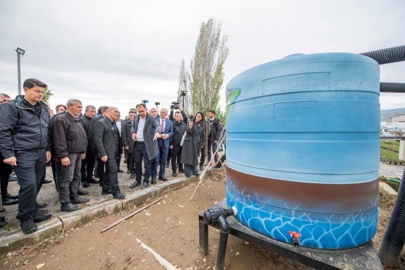 2 bin ücretsiz filtreleme deposuyla Küçük Menderes ovasındaki çiftçilere destek olduklarını dile getiren Soyer, “Bu depolar sayesinde çatılarımızdan hasat ettiğimiz suyu filtreleyerek yer altı su rezervlerimizi zenginleştireceğiz. Bugün bizleri bir araya getiren, Türkiye’nin ilk biyolojik sızdırma göleti olan Bademli Göletimiz yağmur hasadı çalışmalarımızın taşıyıcı kolonu olacak. Bademli Kooperatifimizin seralarının çatılarına ve gölet çevresindeki tarım alanlarına düşen yağmur suları ile birlikte toplamda 60 metreküp yani 24 adet olimpik havuzu dolduracak kadar suyu yeraltında depolayacağız” dedi.