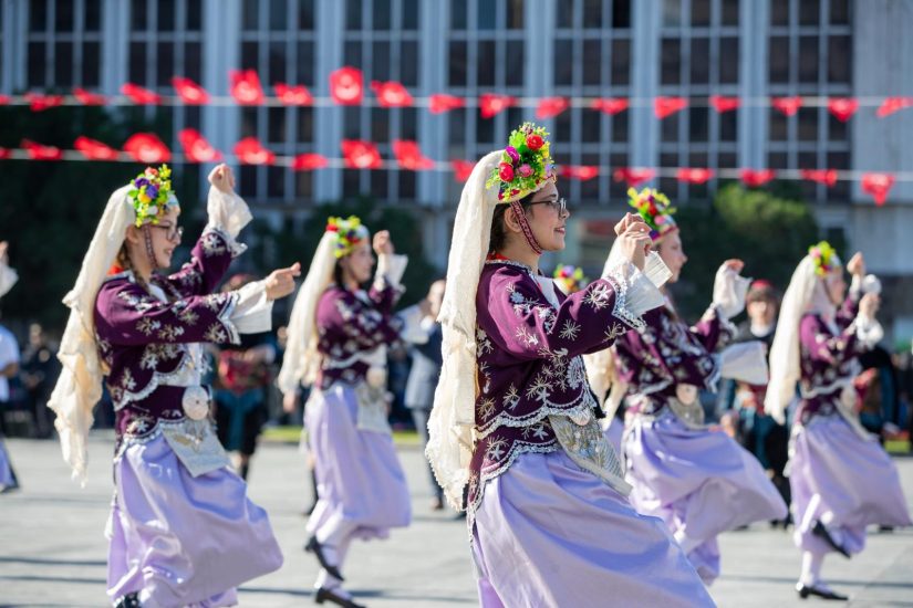 Kutlamalarda, Ege Üniversitesi Halk Dansları Topluluğu, İzmir Yüksek Teknoloji Enstitüsü Halk Oyunları Ekibi, Milli Eğitim Müdürlüğü’ne bağlı okulların halk oyunları ekipleri renkli gösteriler düzenlendi. Törende öğrenciler günün anlam ve önemine ilişkin şiirler de okundu.