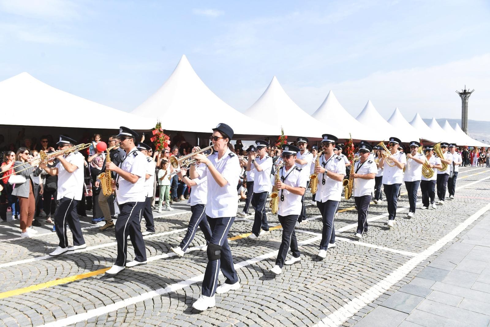 İzmir’de 23 Nisan Ulusal Egemenlik ve Çocuk Bayramı, Cumhuriyet Meydanı’ndaki törenle kutlandı. İzmir Büyükşehir Belediye Başkanı Dr. Cemil Tugay eşi Öznur Tugay ile çocukların büyük coşkusuna sahne olan gösterileri izledi. İzmirlilerin yoğun ilgisiyle karşılanan Başkan Tugay, çocuklarla hatıra fotoğrafı çektirdi.