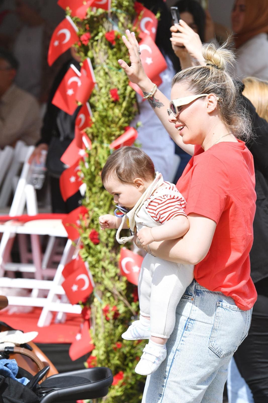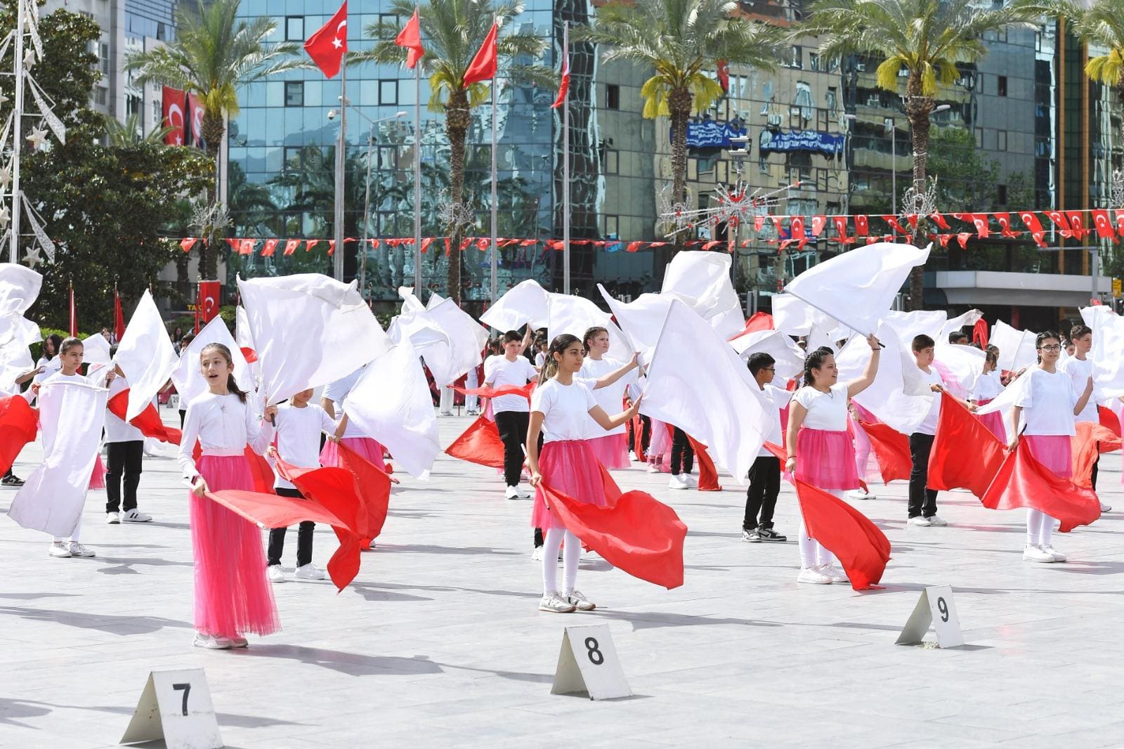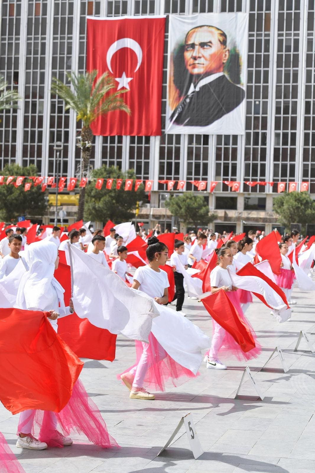 Cumhuriyet Meydanı’nda düzenlenen tören, renkli görüntülere sahne oldu. Törende İzmirlilerle bayramlaşan Başkan Dr. Cemil Tugay, çocuklar ve aileleriyle hatıra fotoğrafı çektirdi. Cumhuriyet Meydanı’ndaki törende ilk ve orta öğretim öğrencilerinin renkli gösterileri büyük ilgi gördü. Miniklerin günün anlam ve önemine ilişkin şiirleri, dans gösterileri ve halk dansları izleyenleri büyüledi.