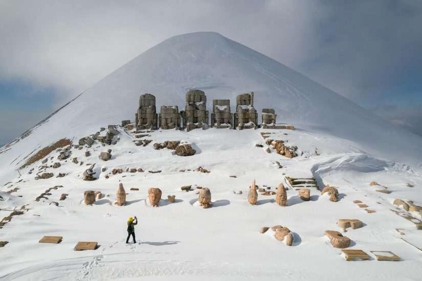 Açıklama: Nemrut anıtsal heykelleri kar yağışından sonra gizemli bir görüntüye kavuşuyor.