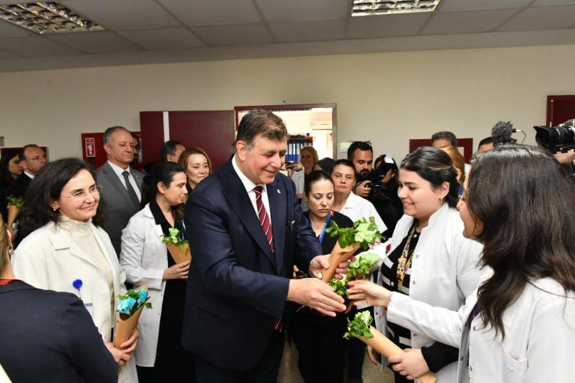 İzmir Büyükşehir Belediye Başkanı Tunç Soyer 14 Mart Tıp Bayramı nedeniyle sağlık çalışanlarını kutladı. Eşrefpaşa Hastanesi’ni ziyaret ederek sağlık emekçilerine teşekkür eden Başkan Soyer, “Pandemi ve deprem felaketinde hastane çalışanlarımız büyük özveri gösterdi. Sizlerle iftihar ediyorum” dedi.