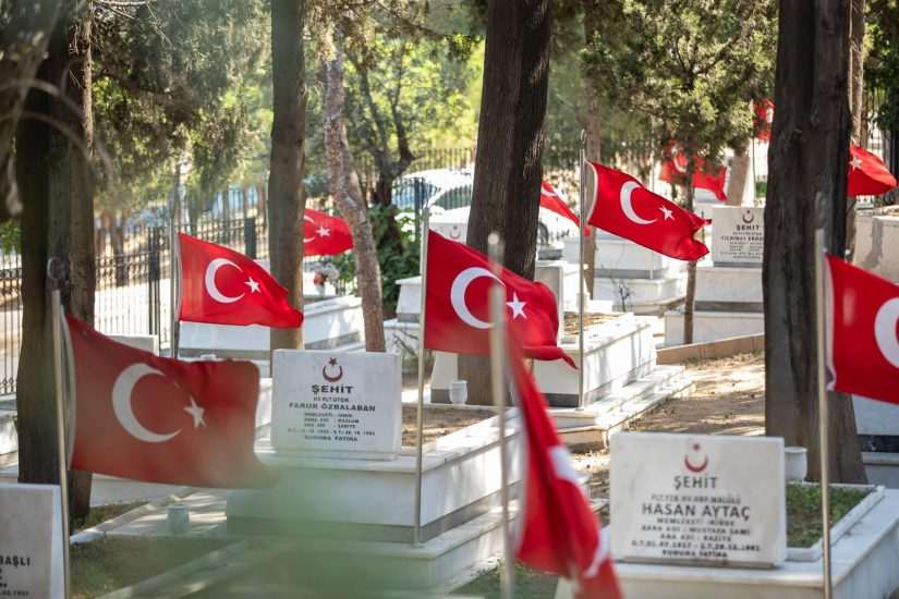 Saygı duruşunda bulunulup İstiklâl Marşı’nın okunmasıyla başlayan tören, Yeşilyurt Ulu Cami İmam Hatibi Sedat Dumlu’nun Kur’an-ı Kerim tilaveti ile devam etti. Ardından İzmir İl Müftüsü Sinan Kazancı tarafından şehitler için dua edildi. Programda İzmir Valisi Süleyman Elban şehitlik defterini imzaladı. Kent protokolü, İzmir Kadifekale Hava Şehitliği’nde bulunan şehit kabirlerine karanfiller bıraktı. Başkan Tugay, Irak’ın kuzeyinde sürdürülen Pençe-Kilit Operasyonu bölgesinde metan gazından etkilenerek 6 Temmuz’da şehit olan Piyade Üsteğmen Ege Akar ve Libya’da görev yaparken kalp krizi sonucu 27 Haziran’da şehit olan Hava Pilot Albay İsmail Haldun Maden’in kabirlerinin başında da dua etti.