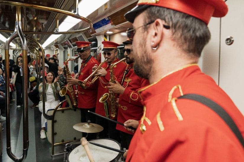 29 Ekim Cumhuriyet Bayramı kutlamaları kapsamında İzmir Büyükşehir Belediyesi Bando Ekibi, İzmirlilere sürpriz yaptı. Fahrettin Altay İstasyonu’ndan metroya binen bando ekibi; Konak, Çankaya ve Bornova istasyonlarında marşlarla İzmirliler’in 29 Ekim Cumhuriyet Bayramı’nı kutladı. İzmir Metrosu’nda yolculuk yapan yurttaşlar Cumhuriyet coşkusunu doyasıya yaşayarak, bayraklar ve alkışlarla marşlara eşlik etti.