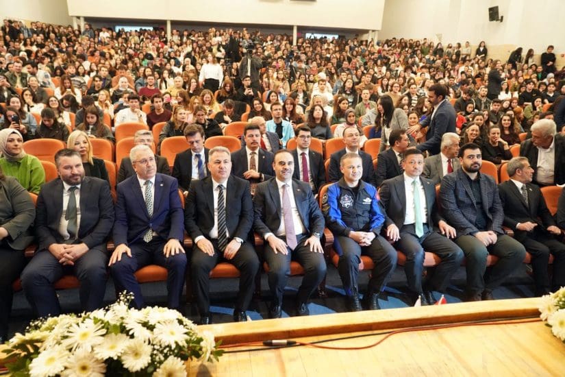 Sanayi ve Teknoloji Bakanı Mehmet Fatih Kacır ile Türkiye’nin ilk astronotu Alper Gezeravcı, Ege Üniversitesinde, öğrenci ve akademisyenlerle bir araya geldi.