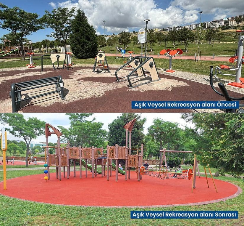 Tartan pistlerin yanı sıra çocukların güvenle parklarda oyun oynayabilmesi için zarar gören kauçuk zeminler baştan sona yenilendi. Karşıyaka’da İZBAN hat boyunda bulunan parklar, Volkan Vedat Akay Parkı, Alaybey’deki kafelerin önündeki parklar, Çiğli İZELMAN Sabiha Gökçen Anaokulu Parkı, Bayraklı 75. Yıl Mahallesi Parkı, Bornova Aşık Veysel Rekreasyon Alanı çocuk oyun alanı, Buca’da Kemal Sunal Parkı, 1081 Sokak Köşesi Parkı, Konak Göztepe’deki kafelerin önündeki parklar, Narlıdere’de İstihkam Lojmanları Parkı, Mahmut Türkmenoğlu Parkı, Menemen Gazi Mahallesi Parkı’nın zemin yenilenmesi tamamlandı. Böylelikle parklar estetik bir görünüme de kavuştu. Onarım ve yenileme çalışmalarının devam edeceği bildirildi.
