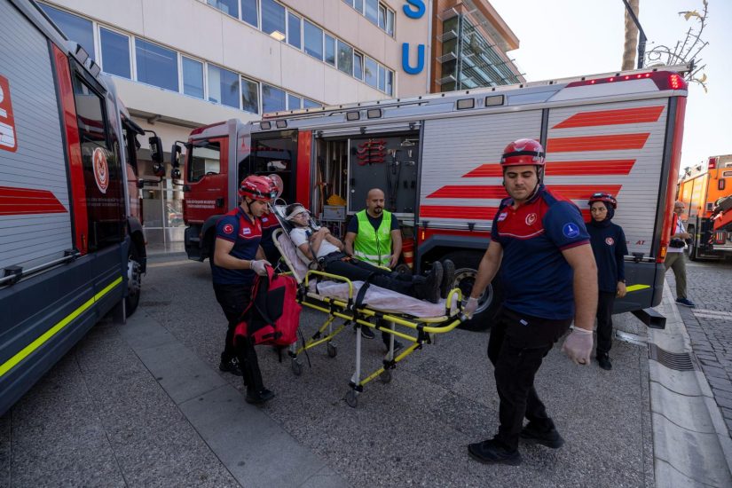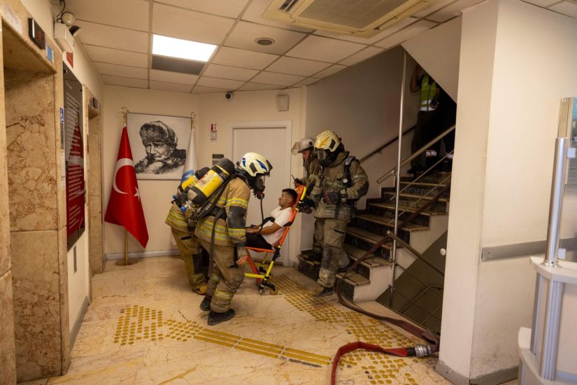 İtfaiye Haftası etkinlikleri kapsamında İzmir Büyükşehir Belediyesi İtfaiye Daire Başkanlığı, İZSU Genel Müdürlüğü Afet ve Acil Durum Yönetimi Birimi iş birliği ile Konak’taki 8 katlı İZSU Genel Müdürlüğü binasında yangın söndürme, tahliye ve kurtarma tatbikatı gerçekleştirdi. Tatbikat senaryosuna göre binanın ikinci katındaki santral odasında yangın çıktı. Santral görevlisi yangına müdahale etmeye çalıştı ancak başarılı olamayınca durumu İZSU acil durum ekiplerine bildirdi. Ekipler, 112 Acil Çağrı Merkezi’ne haber verdi. İhbar üzerine İzmir İtfaiyesi, 2 AKS aracı, 1 merdivenli araç, 2 arazöz ve 1 kurtarma aracıyla hızla olay yerine sevk edildi.