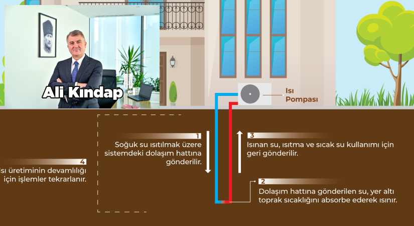 Jeotermal Enerji Derneği (JED) Yönetim Kurulu Başkanı Ali Kındap, yeryüzünün birkaç metre derinliğinde bile toprak sıcaklığının sürekli olarak 10 derecenin üzerinde olduğunu ve mevsimsel değişikliklerden etkilenmediğine dikkat çekerek, Türkiye’de özellikle doğalgaz altyapısının olmadığı yerlerde inşa edilen konutlarda ısı pompası kullanımının teşvik edilmesinin ileriki dönemlerde ise doğalgaz kullanımının jeotermal kaynaklı ısı pompaları ile ikame edilmesi gerektiğini belirtti.