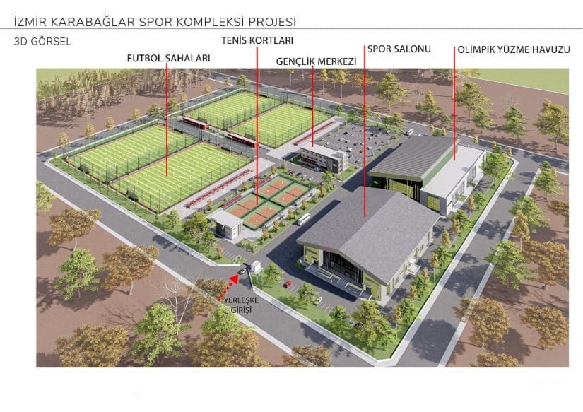 Yenitepe Rekreasyon alanı içerisinde kurulacak olan spor kompleksinde 10 bin metrekare 3 bin seyirci kapasiteli spor salonu, 10 bin metrekarelik tam olimpik yüzme havuzu, 2 bin metrekare Gençlik Merkezi, 4 adet tenis kortu içerisinde soyunma odaları ve kafeteryalar olan, 4 adet 68 metreye 105 metre boyutlarında futbol sahası, soyunma binası, kafeterya. Ayrıca 400 araçlık açık otopark.