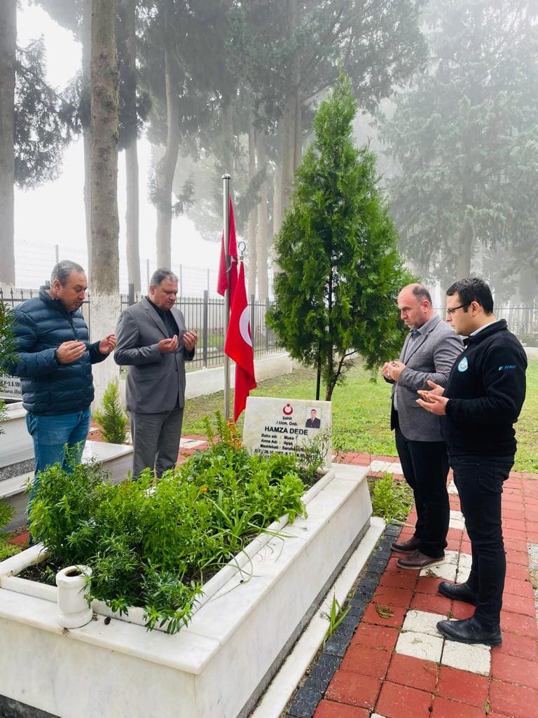 Manisa Büyükşehir Belediyesi Mezarlıklar Dairesi Başkanı Aydoğan İra, Saruhanlı Muhtarlık İşleri Şube Müdürü Serdar Özgedik ile birlikte, Sivas’ta göreve giderken 26 Haziran 2017 tarihinde meydana gelen trafik kazasında şehit olan Jandarma Uzman Onbaşı Hamza Dede’nin Saruhanlı Şehitliğindeki kabrine ve baba evine ziyaret gerçekleştirdi. Şehidimizi kabri başında dualarla anan Büyükşehir heyeti, şehidimizin ailesi ile yakından ilgilenerek, aileye rengini şehitlerimizin kanından alan Al Yıldızlı Bayrağımızı armağan etti. Aileye Manisa Büyükşehir Belediye Başkanı Cengiz Ergün’ün selamlarını ileten Mezarlıklar Dairesi Başkanı Aydoğan İra, tüm şehitlerimizi saygıyla andı.