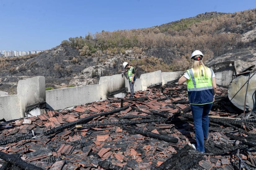 İzmir Büyükşehir Belediyesi, Yamanlar Dağı’nda çıkan orman yangını sırasında çatısına sıçrayan kozalak nedeniyle yanmaya başlayan Karşıyaka Örnekköy’deki Manolya Apartmanı’nda yaşamı normalde döndürmek için harekete geçti. İzmir İtfaiyesi’nin hızlı müdahalesi sayesinde yangın binayı tamamen sarmadan söndürülmesine karşın 9 katlı apartmanın elektrik, su ve asansör sistemi zarar görerek kullanılamaz hale geldi. 41 daireden oluşan apartmanda evlerini tahliye eden vatandaşları misafir ederek destekleri başlatan İzmir Büyükşehir Belediyesi, apartman sakinlerinin kurumlardan beklediği desteği alamaması ve evlerini kullanamaması üzerine Yapı İşleri Dairesi Başkanlığı’nı seferber etti. Yapı İşleri Dairesi Başkanlığı’nda görevli mühendisler, apartmana giderek inceleme çalışması başlattı. Ekipler, vatandaşların en kısa sürede güvenle evlerine yerleşebilmeleri için elektrik tesisatından başlamak üzere çalışmalara başlayacak.