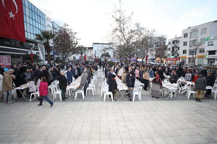 Menderes Belediyesi, Menderes Cumhuriyet Meydanı’nda 18 Mart Çanakkale Zaferi ve tüm şehitler anısına iftar yemeği düzenledi. Binlerce Menderesli iftar yemeğine katıldı. Hep birlikte dualar edildi oruçlar açıldı. Düzenlenen organizasyona yoğun ilgi gösteren vatandaşlar memnuniyetini dile getirdi.