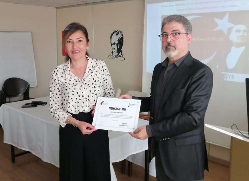 Etkinliğin sonun da Karşıyaka Kent Konseyi Başkanı Dilek Karcı tarafından Prof. Dr. Hasan Sözbilir’e teşekkür belgesi verildi.