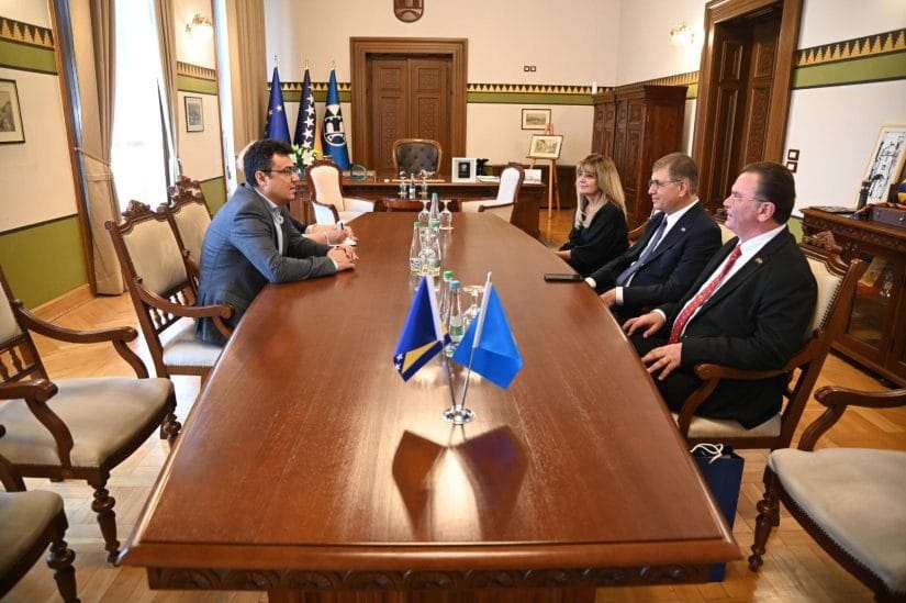 Srebrenitsa Katliamı’nın 30’uncu yılında Bosna- Hersek’in güneyinde bulunan Potoçari’de düzenlenen anma törenine katılan İzmir Büyükşehir Belediye Başkanı Dr. Cemil Tugay, programının ikinci gününde Saraybosna Belediye Başkanı Predrag Puharic ve Türkiye Cumhuriyeti Bosna Hersek Büyükelçisi Emin Akseki ile bir araya geldi. Başkan Tugay ilk olarak Saraybosna Belediyesi’ne geçti. Belediye Başkanı Puharic ile iki kent arasındaki ilişkileri güçlendirecek projeler ile ilgili konuşan Başkan Tugay, Barcelona ile yaptıkları gibi İzmir’de “Saraybosna Günleri”, Saraybosna’da da “İzmir Günleri” adı altında kültürel ve ticarî etkinlikler yapılabileceğini belirtti. Görüşmede bu yıl 94. kez düzenlenecek İzmir Enternasyonal Fuarı da (İEF) gündeme geldi.
