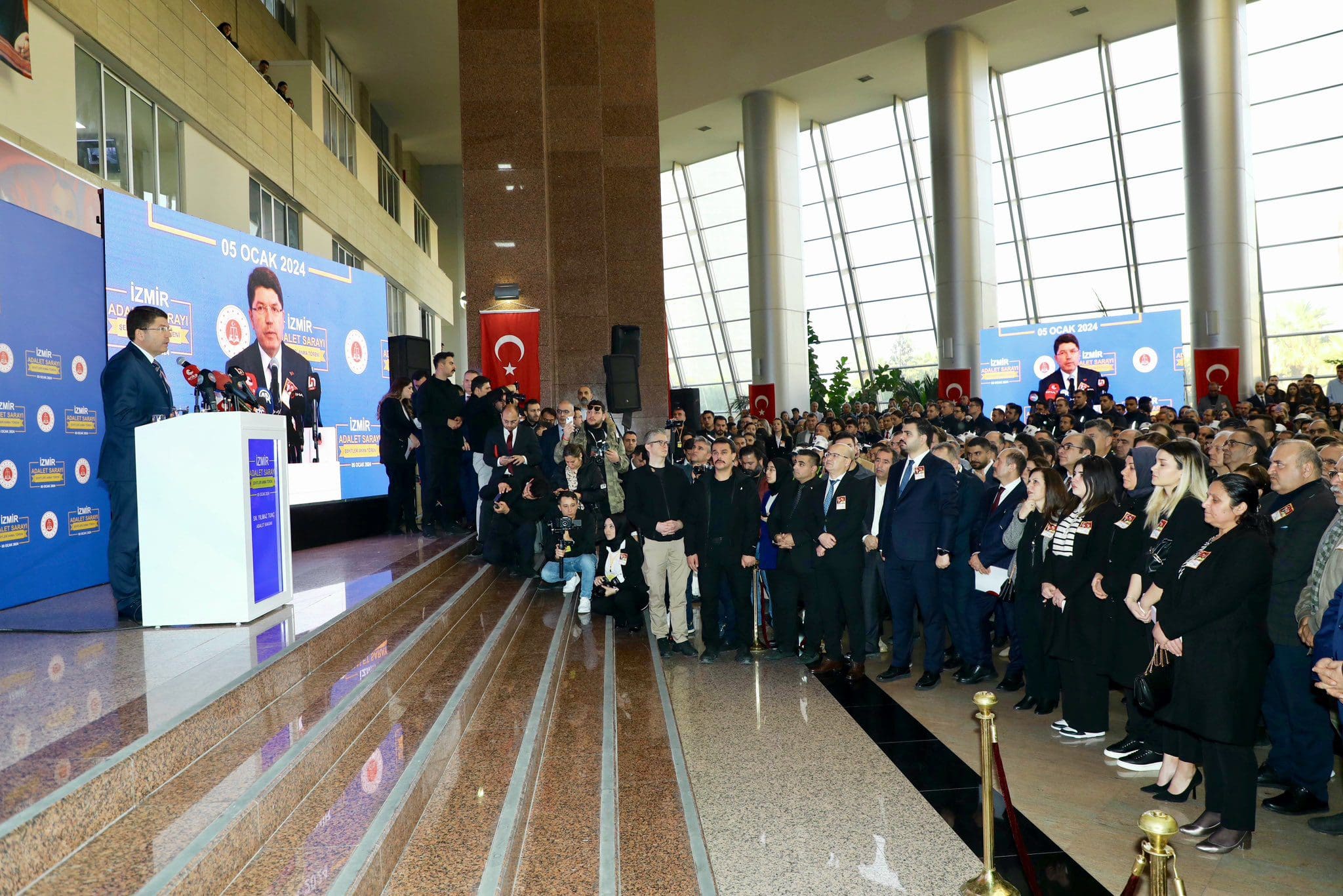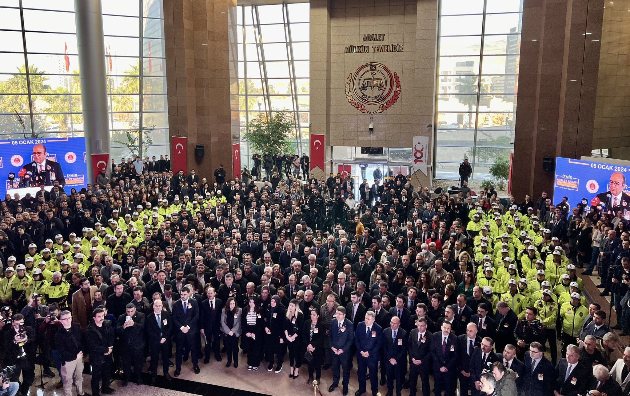 Bayraklı Adliyesi içinde düzenlen törene Adalet Bakanı Yılmaz Tunç, İzmir Cumhuriyet Başsavcısı Fahri Mutlu Tosun, İzmir Adli Yargı İlk Derece Mahkemesi Adalet Komisyonu Başkanı Oktay Tabur, İzmir İl Emniyet Müdürü Celal Sel, İzmir Valisi Süleyman Elban, Ege Ordusu Komutanı Orgeneral Kemal Yeni, İzmir Büyükşehir Belediye Başkanı Tunç Soyer, İzmir milletvekilleri, ilçe belediye başkanları, Şehit Fethi Sekin’in eşi Rabia Sekin ve kızı Dila Sekin, Musa Can’ın eşi Mecburiye Can ve kızı Emine Can, adliye personeli ve avukatlar katıldı.