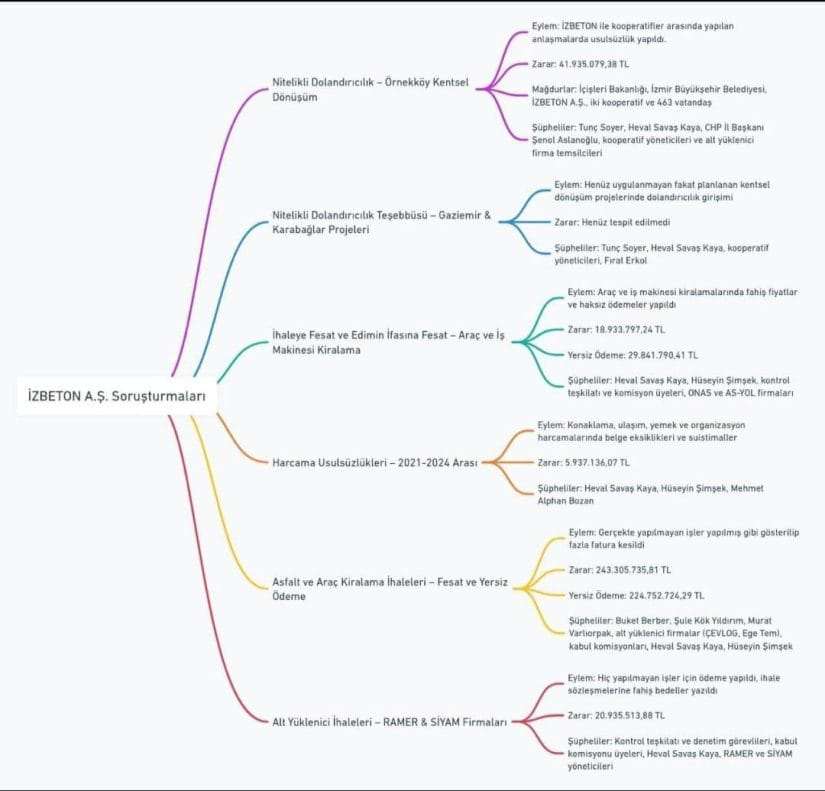 Savclık açıklamasına göre, “İzmir Büyükşehir Belediyesi/İzbeton ve alt taşeron şirketler eliyle yolsuzluk Sayıştay Raporu, Mülkiye Müfettişi Raporu, Bilirkişi Raporlarına istinaden tespit edilmiş olup İzmir Cumhuriyet Başsavcılığı koordinesinde yürütülen soruşturma kapsamında; Tespit edilen suç unsurları doğrultusunda 01. 07. 2025 günü operasyonel çalışma yapılmış, 157 kişi hakkında gözaltı kararı verilmiştir” deniliyor.