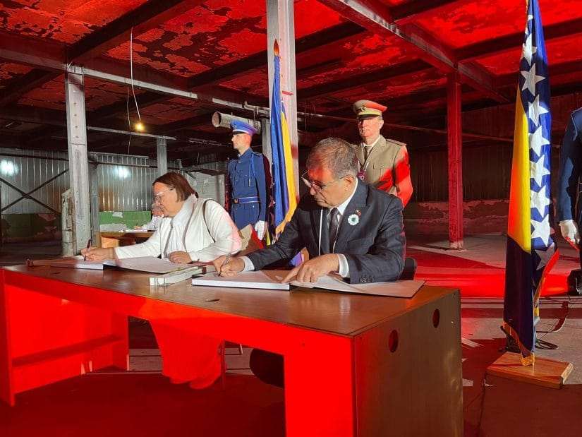 Sonrasında birçok ülkeden temsilcinin bulunduğu anma törenine katılan Başkan Tugay, savaş sırasında 25 bin Boşnak’ın canlarını kurtarmak için sığındığı eski akü fabrikasına gelerek buradaki taziye defterini imzaladı.