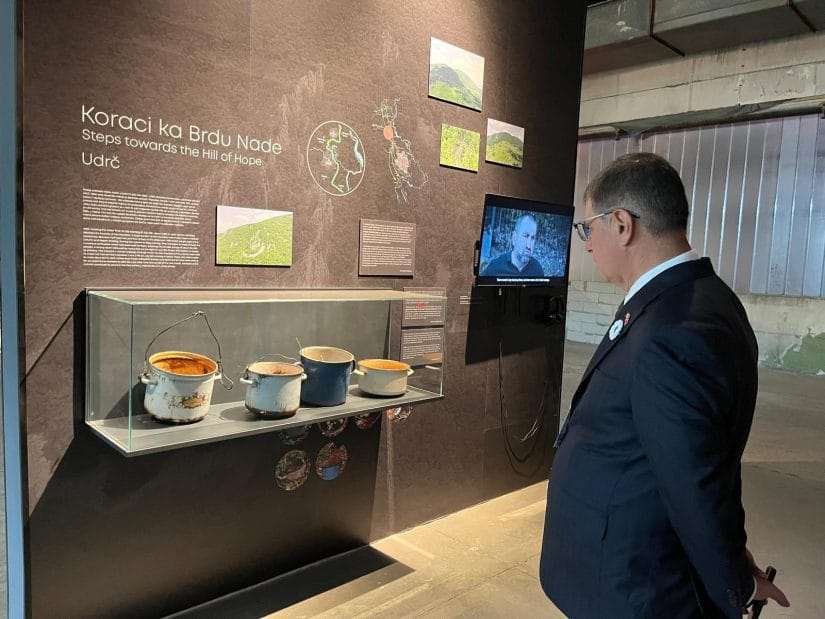 Sabah erken saatlerde Potoçari’ye gelen Başkan Dr. Cemil Tugay, küratörler Azir Osmanović, Elma Hašimbegović ve Elma Hodžić tarafından hazırlanan “Geçenlerin (Geçmeyenlerin) Adımları” sergisini ziyaret etti.