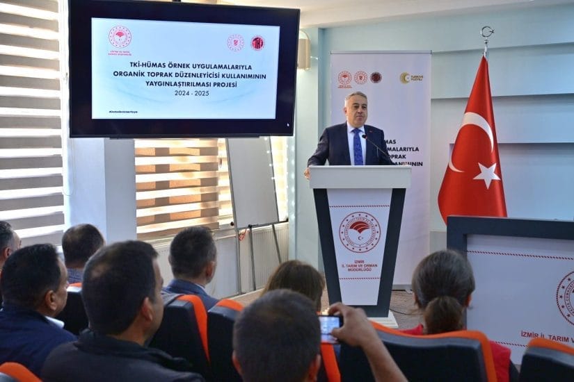 Tarım ve Orman Bakanlığı Eğitim ve Yayın Dairesi Başkanlığı ile Türkiye Kömür İşletmeleri Kurumu iş birliğinde hayata geçirilen “TKİ-Hümas Örnek Uygulamalarıyla Organik Toprak Düzenleyicisi Kullanımının Yaygınlaştırılması” projesi kapsamında İzmir İl Tarım ve Orman Müdürlüğü’nde Hümik Asit Dağıtım Töreni düzenlendi.